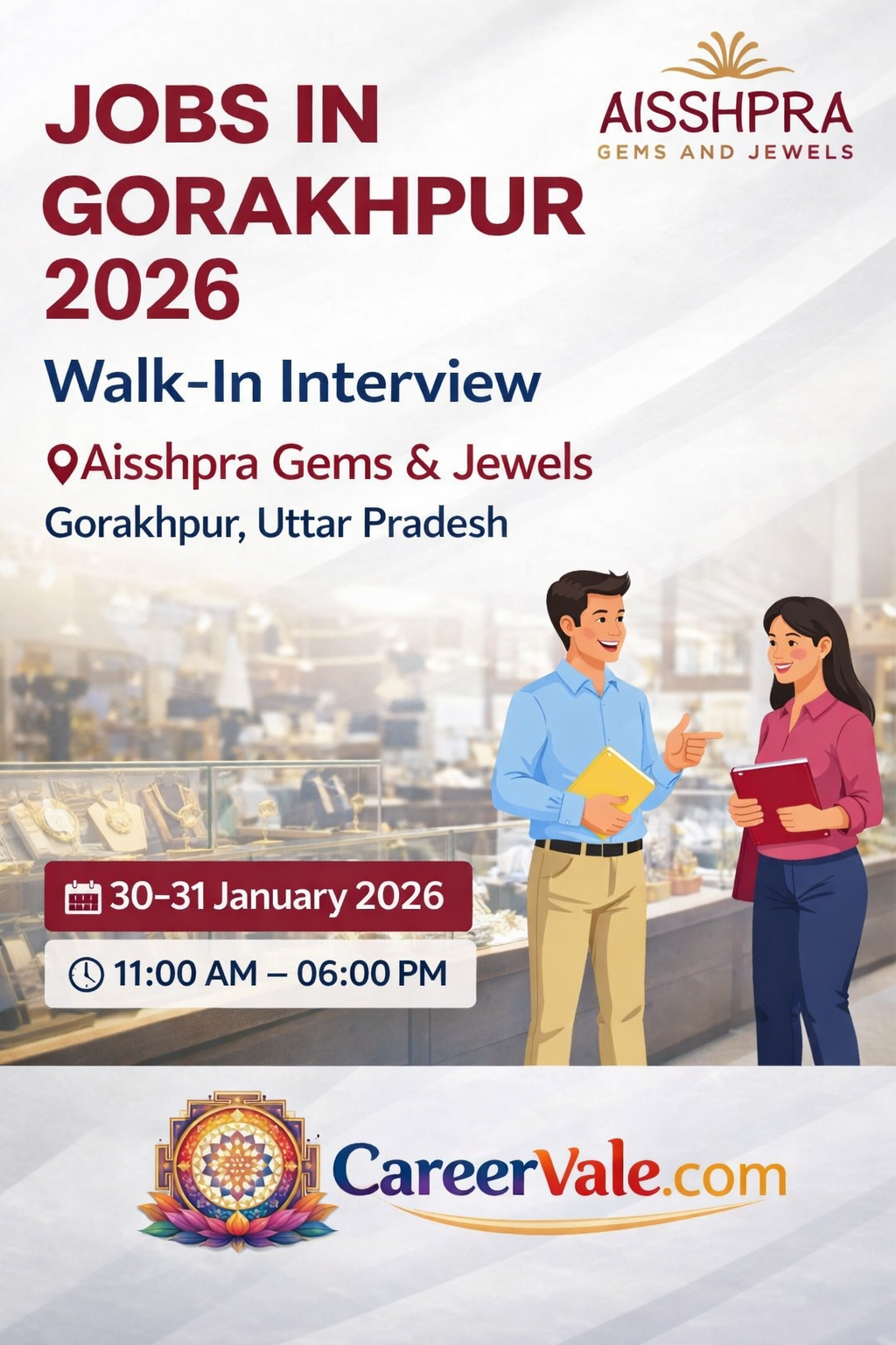 If you are searching for jobs in Gorakhpur or a job in Gorakhpur Uttar Pradesh, this walk-in interview is a great opportunity. Aisshpra Gems & Jewels is hiring jewellery industry roles through a direct walk-in interview in Gorakhpur Uttar Pradesh. Candidates with prior jewellery experience can apply.